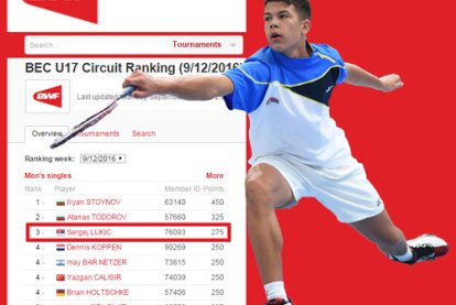 Naš reprezentativac Sergej Lukić na rang listi igrača do 17 godina Evropskog kruga Evropske badminton konfederacije, objavljenoj 12. septembra 2016, s 275 bodova drži treće mesto u singlu