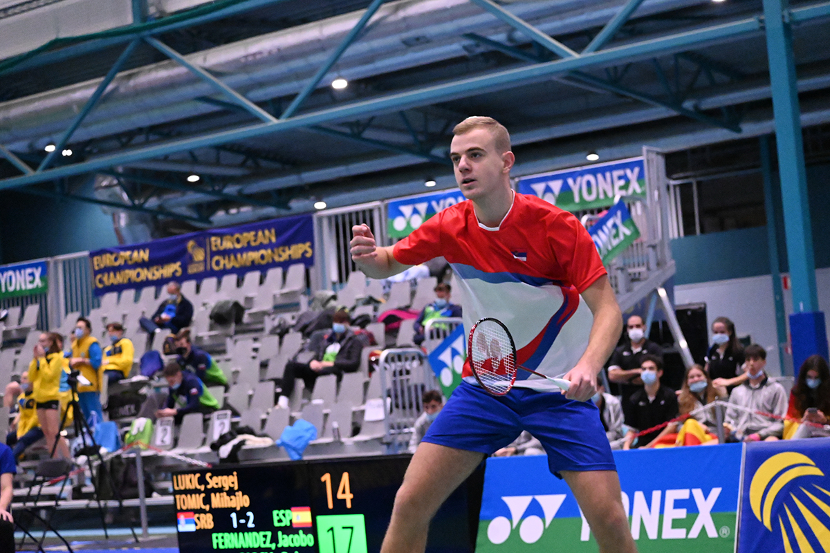 Posle sigurne pobede nad Italijom, kojom su naši reprezentativci obezbedili plasman u četvrtfinale, meč sa Španijom je opravdao epitet derbija ove grupe. Srbija je povela pobedom u okršaju mešovitih parova. Mihajlo Tomić i Anđela Vitman bili su ubedljivi protiv Salvadora Franka i Marije de la o Perez (21:12, 21:15). Rival je izjednačio posle duela u muškom singlu. Nakon 40 minuta meča punog neizvesnosti Miguel Esteve je savladao Sergeja Lukića (21:19, 10:21, 21:19). U ništa manje neizvesnom meču ženskog singla rival je ponovo slavio. Lucija Rodrigez je bila bolja od Marije Sudimac u tri seta (11:21, 21:16, 21:19). Novo izjednačenje je usledilo nakon okršaja muških dublova. Sergej Lukić i Mihajlo Tomić su pobedili Jakoba Fernandeza i Rubena Garsiju iako su gubili sa 1:0 u setovima – (20:22, 21:17, 21:14). U odlučujućem meču ženski dubl Španije Kandela Akros, Lucija Rodrigez je bio bolji od srpske kombinacije Sara Lončar, Anđela Vitman (21:16, 21:12).