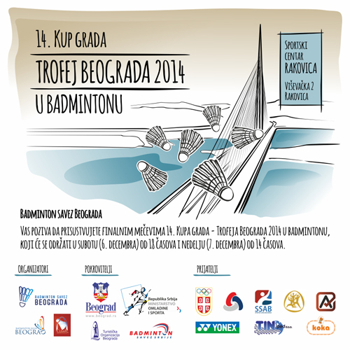 Badminton savez Beograda, Badminton klub Beograd i Badminton klub Clear, u saradnji sa Badminton savezom Srbije, pod pokroviteljstvom Sekretarijata za sport i omladinu grada Beograda, Ministarstva omladine i sporta Republike Srbije i Turističke organizacije Beograda, organizuju tradicionalni ’’XIV Kup grada – TROFEJ BEOGRADA 2014 u badmintonu’’. Takmičenje će se održati 6. i 7. decembra 2014. godine u Sportskom centru Rakovica (Viševačka 2, Beograd). Seniorski turnir nosi najvišu nacionalnu A kategoriju dok juniorsko takmičenje pripada grupi zvaničnih kupova. Preko 100 najboljih srpskih takmičara iz 13 badminton centara će se nadmetati u svih pet seniorskih i četiri juniorske pojedinačne konkurencije igrača uzrasta do 11 i 15 godina.