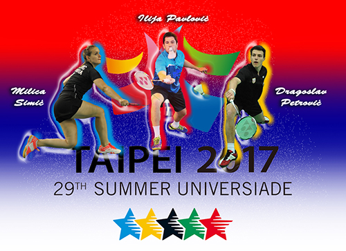 U subotu, 19. avgusta 2017, u Kineskom Tajpehu počinju 29. letnje univerzitetske igre. I na ovom, najvećem i najznačajnijem, svetskom skupu studentskog sporta srpski badminton će imati svoje predstavnike. Boje Srbije na badminton turniru, koji startuje 23. avgusta, braniće troje reprezentativaca – Milica Simić, Ilija Pavlović i Dragoslav Petrović. Oni, sa glavnim trenerom badminton reprezentacija Srbije Milanom Barbirom, put Kineskog Tajpeha kreću u petak. Pred polazak za Univerzitetske igre Barbir je istakao su Simićeva, Pavlović i Petrović spremni da se u najboljem svetlu predstave na velikoj međunarodnoj pozornici.