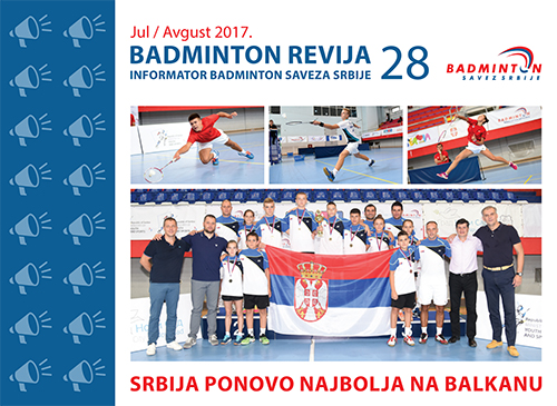 U utorak, 12. septembra 2017, izašao je 28. broj Badminton revije koji objedinjuje sve ono što se dešavalo u našem sportu u julu i avgustu 2017. Dvadeset i osmi broj informatora Badminton saveza Srbije (BASS) ima 36 strana na kojima možete naći kompletne izveštaje svih događaja iz kalendara BASS iz pomenutog perioda, fotografije koje su obeležile protekli period i Balkansko prvenstvo za igrače do 15 godina u Novom Sadu, objave u vodećim medijima o srpskom badmintonu...