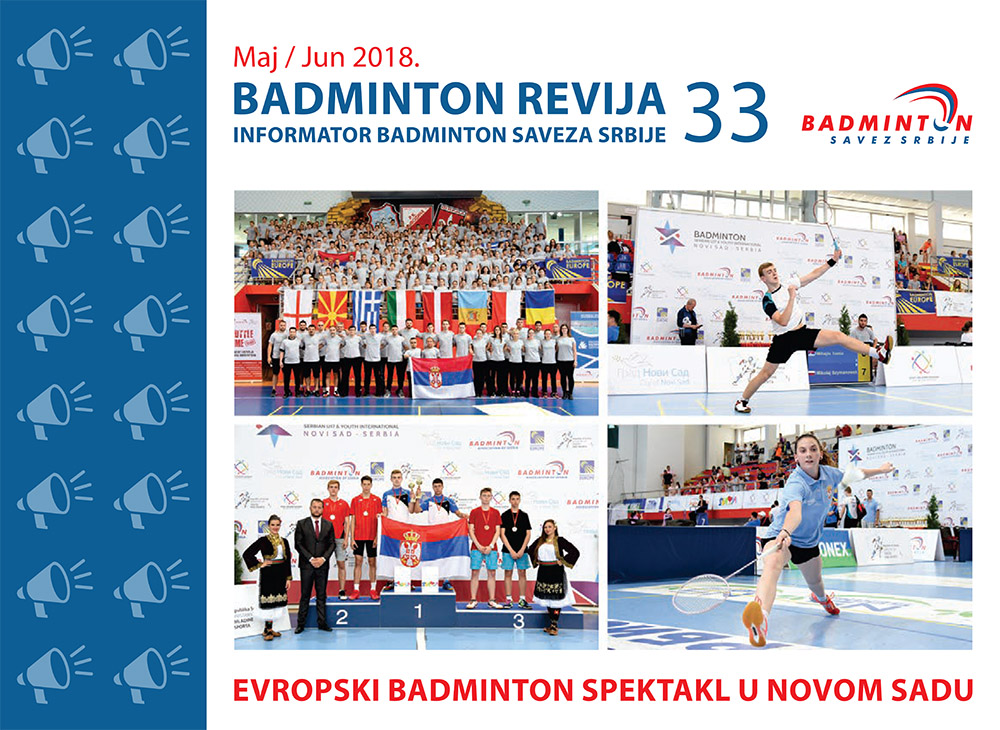U četvrtak, 5. jula 2018, izašao je 33. broj Badminton revije koji objedinjuje sve ono što se dešavalo u našem sportu u maju i junu 2018. Tridset i treći broj informatora Badminton saveza Srbije (BASS) ima 44 strane na kojima možete naći kompletne izveštaje svih događaja iz kalendara BASS iz pomenutog perioda, fotografije koje su obeležile protekli period i Serbian U17 & Youth International Novi Sad 2018, objave u vodećim medijima o srpskom badmintonu...